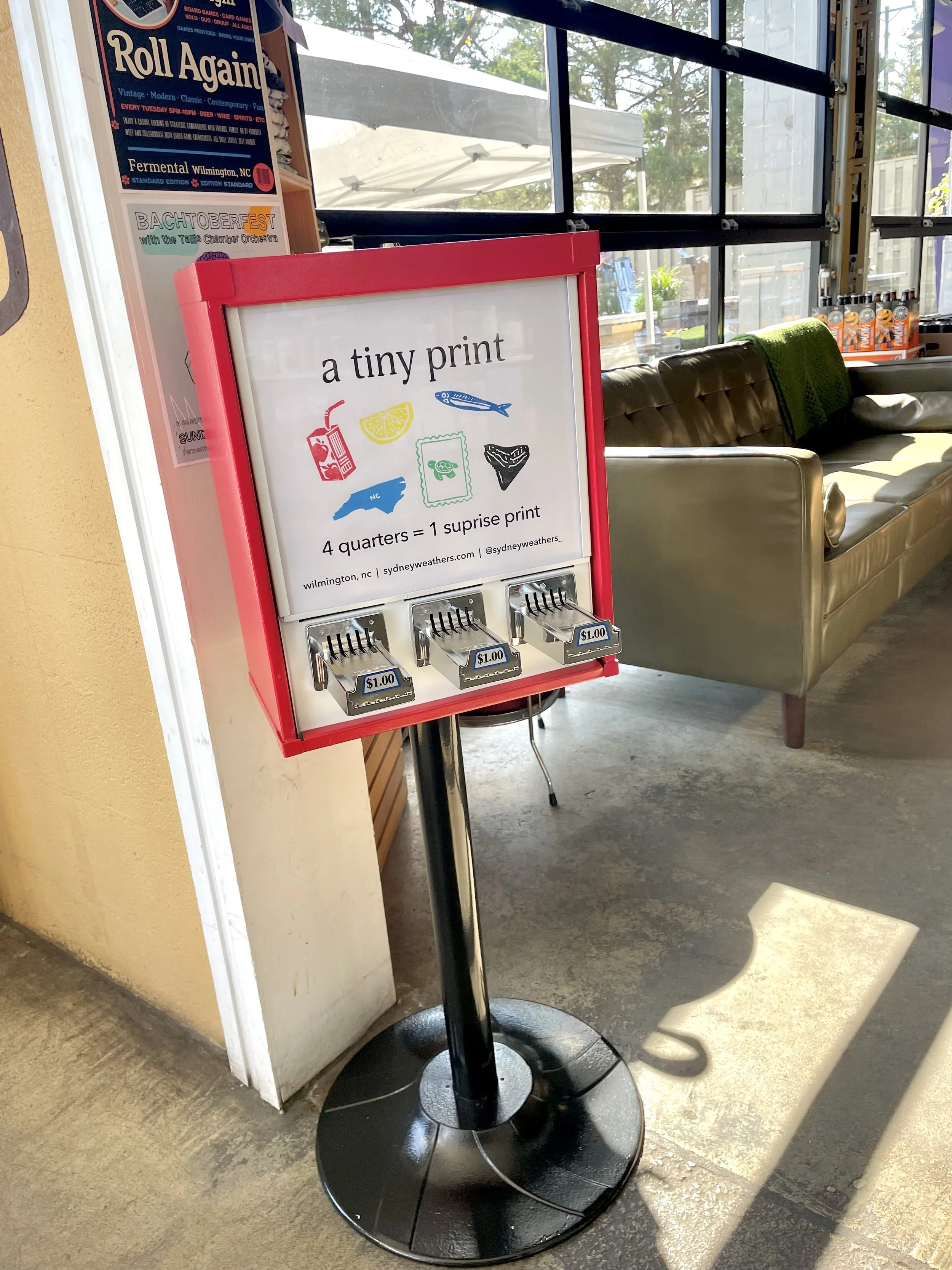 a tiny print is an art vending machine in downtown Wilmington, NC, offering hand-stamped original artwork inspired by the beauty of our coastal town.