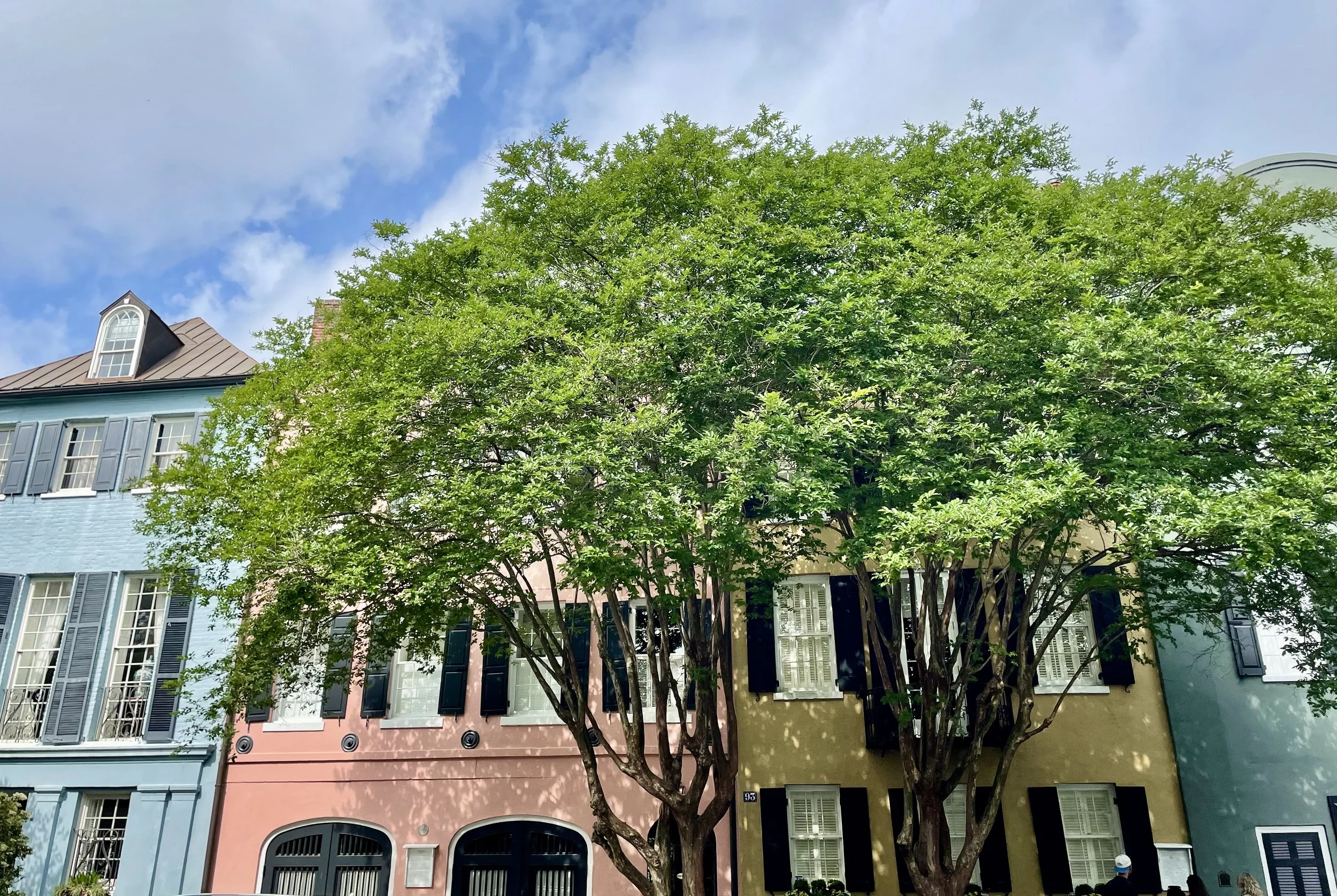 Take a break from downtown and head North to Magnolia Plantation! Complete with gorgeous landscaping and never-ending greenery, it is not what I expected. I hopped on their little train trolley, which goes around the grounds for a nature tour. You will see multiple bodies of water covered in duckweed and the heads and tail tips of two to three-foot alligators popping out. They even built little ramps in the water for them to rest on. Other than the wildlife, there are plenty of flowers and trees, including one of my favorite flowers: delphinium. In addition, mid-April to mid-May is when their Magnolia trees are starting to bloom. After my train ride, I took a tour of the house and learned about how the original plantation house burnt down from a lightning strike. Then, the house they built to replace it burnt down from a fire started by Union soldiers after the war’s end. Eventually, the owner scrounged up as much money as he could to build a very simple, basic house. Nine years later, his daughter built a house around the house and connected them, creating two houses in one. My favorite part was an original painting of Benjamin Franklin hanging in the dining room from the late 1700s, depicting him as quite the lady’s man.