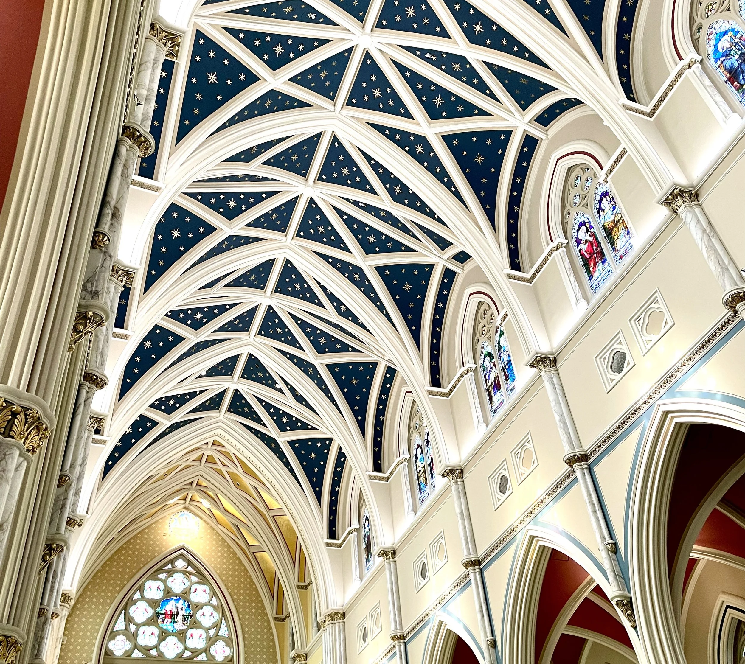 The Cathedral of St. John the Baptist is one of the most beautiful churches I’ve ever visited. The roof is a dreamy, gold constellation pattern on top of a pastel navy. The side walls are either a soft red or a light yellow, making for the perfect combination of primary colors. The cathedral was founded in 1821, which is detailed on a historical street sign near the church. The red-brick exterior goes so high that your head has to be parallel with the ground for even a glimpse at the top, and the cut-outs and geometric design make it an architectural must-see.